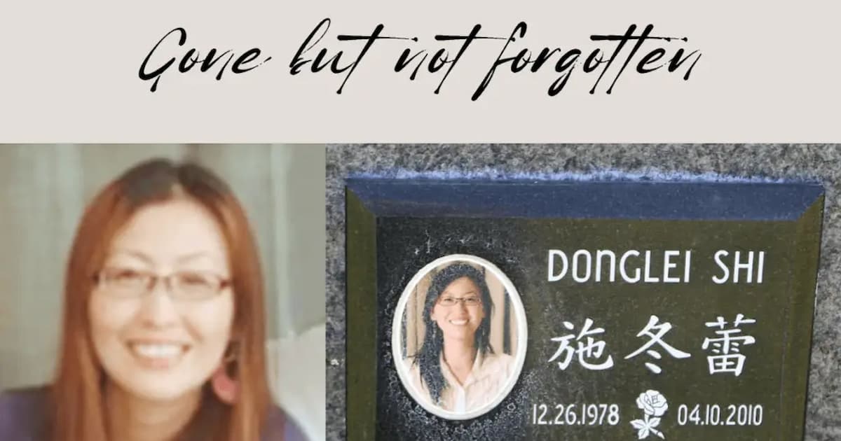 تم خنق دونغلي شي حتى الموت في 9 أبريل 2010، في ألهامبرا، كاليفورنيا، على بعد بضع أميال شمال شرق وسط مدينة لوس أنجلوس. قضى والدها سنوات في البحث عن معلومات حول جريمة قتل ابنته، ويعتقد هو والمحققون أنها كانت تعرف الشخص الذي تسبب في وفاتها.